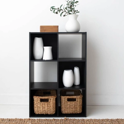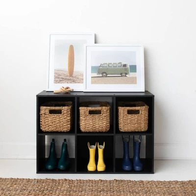 Keep clutter out from underfoot with this six-cube organizer. It’s sleekly stylish with a matte black finish and subtle replicated wood grain, all while keeping your books, knickknacks and other items stored away. The perfect marriage of flair and function, this organizer is an ideal addition to any busy living space. Signature Design by Ashley is a registered trademark of Ashley Furniture Industries, Inc.
