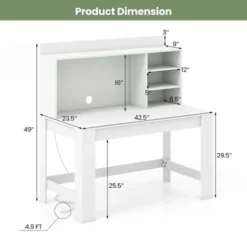 Costway Computer Desk With Hutch 2 Power Outlets USB & Type-c Charging Ports 3 Shelves White/Black