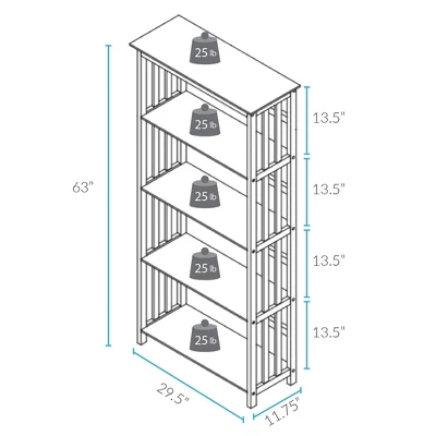 63″ 5 Tier Mission Style Bookcase – Flora Home