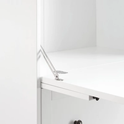 - Fold-down desk with flush hinges, soft down stays, and wood pull-out supports has a 20lb weight limit