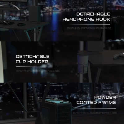 Gaming Desk & Chair Set – Black & Red High Back Gaming Chair with Flip-Up Arms; Desk with Detachable Headphone Hook/Cupholder Additional Features: Powder Coated X-Shaped Frame, Detachable Cupholder/Headphone Hook