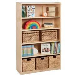 Costway 5-Cube Kids Bookshelf And Toy Organizer Wooden Storage Bookcase With Wood Legs