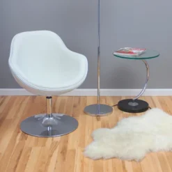 Sophisticated and unique, the “C” Table’s curvaceous design will be sure to turn heads. A sleek chrome stem supports a glass table top and sits on a polished black base. Great for use as an end table or accent table. Add a modern cosmopolitan style to your space by featuring this stylish design in your home.