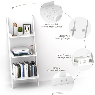 - Package includes: 1x 3 tier bookcase shelf ladder leaning