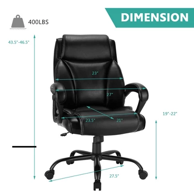 - Sturdy Structure with 400 LBS Capacity: Consisted of heavy-duty metal base and premium gas lift, this executive chair possesses great stability and strong weight capacity. The maximum weight capacity is up to 400 lbs, suitable for most people of different size and weight.