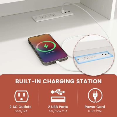 - Built-in Charging Station: This white computer desk is equipped with 2 AC outlets and 2 USB ports, allowing you to conveniently charge your devices and eliminate the need for messy extension cords. Stay connected and powered up during working!