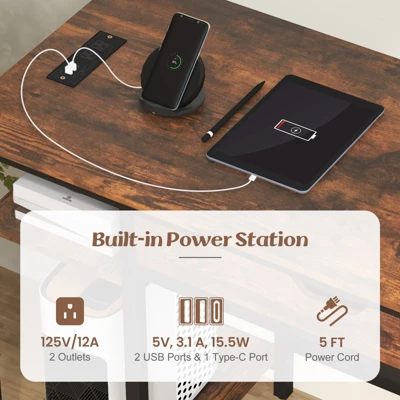- Built-in Power Station: Built with 2 power outlets, 2 USB charging ports and 1 type-C port, the computer desk ensures that your phone, headset, tablet, power bank can be charged quickly. And 5ft long power cord allows the desk to be used in any location.