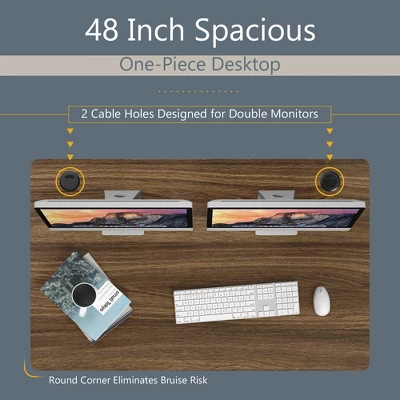 - Spacious One-piece Tabletop: Roomy working area space effectively improves working efficiency. Spacious desktop can accommodate monitor, laptop, mouse, books and many other office supplies. It is also designed with 2 cable holes for clutter-free environment. Besides, the cable management tray and hanging hook free up more desktop surface and bring much more storage convenience.