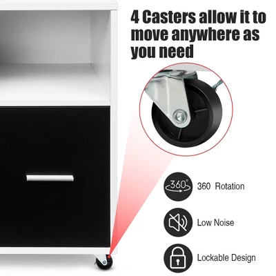 - [Free-range Mobility with 5 Casters] Coming with 5 flexible wheels, this file cabinet can be rotated 360 degrees and move anywhere you may need it. 2 casters with brakes can not only lock this office cabinet in place but also enhance its overall stability. Besides, there is almost no noise during the rotation for better use experience.