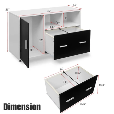 - [Ample Storage Compartments] Featuring 2 open spaces, 1 large drawer and 1 storage cabinet, our file cabinet brings much convenience to organize your room. The hanging filing folders can be moved and adjusted, making it easy to accommodate legal size, letter size and A4 folders. Plus, 39.5”(L) x 16”(W) surface is spacious enough to hold your printer.