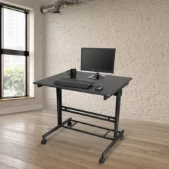 Stand Up Desk Store Rolling Adjustable Height Standing Desk Computer Workstation (Black, 40″ Wide)