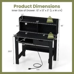 Costway Computer Desk With Power Outlets And USB Ports & Type-C Hutch Open Shelf Drawer Black/White