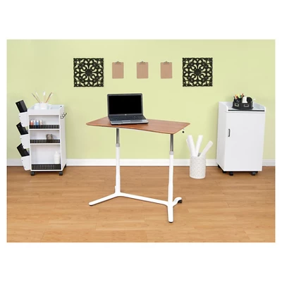 The versatile Sierra Adjustable Height Desk from Calico Designs is the perfect work desk for a multitude of applications. The large tabletop is adjustable in height, making it the perfect desk for sitting or standing while you work. Easily adjust the height with an accessible adjustment lever on either side of the table. Two locking casters offer mobility so you can place it wherever you’d like, and the non-skid rubber feet provide stability.