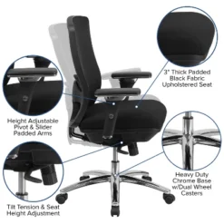 - 5-Star Chrome Base with Dual-Wheel Casters