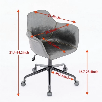 - Chair dimensions: seat width 24.2 in, seat depth 18.1 in, seat height 16.7–23.4 in, backrest height 21.4 in, overall height 31.4–34.2 in