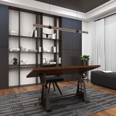 - •Brown wood drafting office desk carries a rectangular top with tilt cranking mechanism on a trestle style base