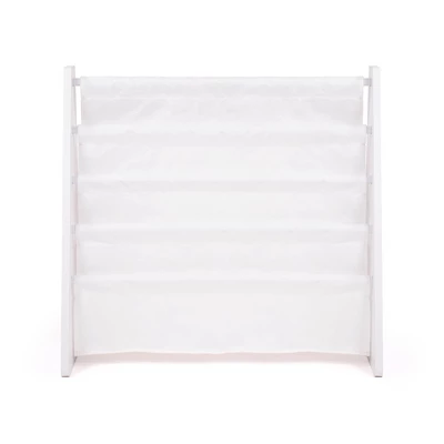 The space saving, toddler sized Humble Crew Kids Bookshelf 4 Tier Book Organizer is the perfect storage solution for your little one’s favorite collection of books. Our children’s bookcase displays books with covers facing forward for easy identification. Bookrack features four deep fabric storage pockets for reading books, board books, coloring books and magazines of all shapes and sizes. Sturdy engineered wood construction is easy to assemble and clean. Space saving bookshelf is sized just right for your toddler and is ideal for children aged 3 and up. Assembled dimensions: 25″ W x 10.6″ D x 23.5″ H