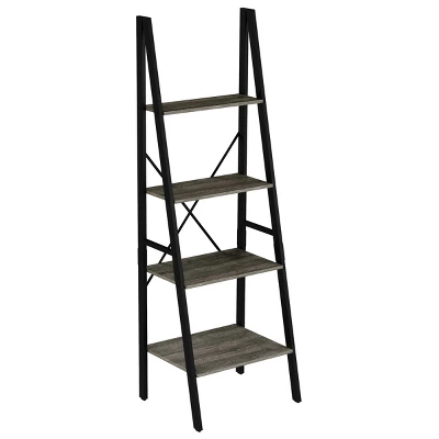 Incorporate a stylish yet functional piece into your modern home decor with this 4-Tier Industrial-Style Wood Bookshelf by Lavish Home. With clean lines that fit seamlessly in contemporary spaces, this ladder bookshelf provides the perfect platform for displaying books, knickknacks, framed photos, and figurines in your living room, bedroom, or kitchen. Construction from laminate wood with a chic gray faux woodgrain finish and a sleek black metal frame creates a neutral-hued bookshelf that pairs well with most palettes to turn your empty wall space into an attractive, purposeful focal point.