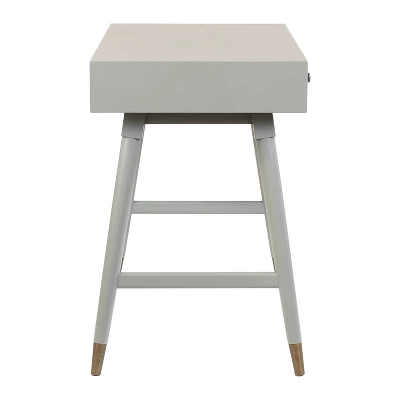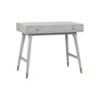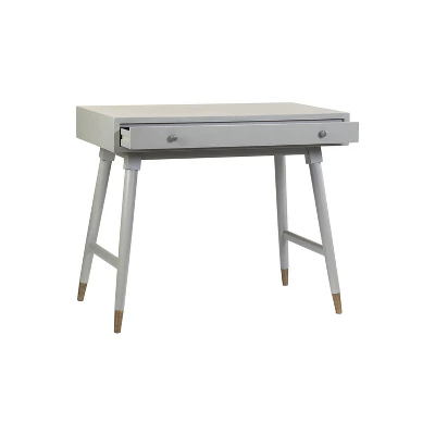 Put a pop of personality into your home office or living room with this clean-lined desk. Perfect for storing you office essentials, artful accents, or potted plants. Drawing inspiration from mid-century modern designs, this piece is founded atop four splayed legs with dipped feet to create a subtle contrast. A single storage drawer provides a place to tuck away keys, mail, and more. Made from a mix of solid and manufactured wood, this compact design fits smaller spaces.
