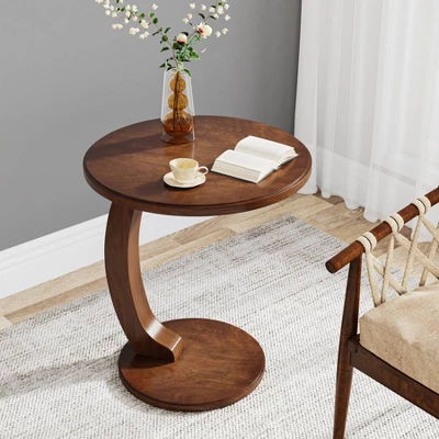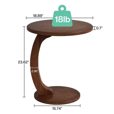 Elegantly designed with curved legs and a round top, this vintage-inspired, C-shaped wooden side table is not only visually pleasing. Its rounded corners are perfect for homes with children. With dimensions of W 18.89x D 18.89x H 23.62 inches, this C-shaped end table is a great fit for apartments or compact rooms. It’s designed to slide into corners, or next to beds without occupying too much space, which is perfect for smaller spaces.