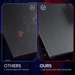 - CARBON-FIBER DESKTOP: The carbon-fiber desktop provides a sleek look and is waterproof and resistant to wear, allowing you to enjoy this stylish desk for years to come