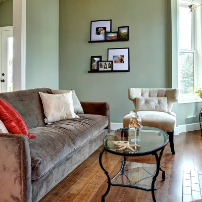 - FLOATING LEDGE SHELVES – They hang on walls with no visible screws, connectors, or tracks.