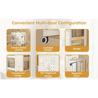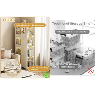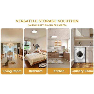 - 【Two Opening Ways】Storage bins with lids can be opened in two ways. You can open the side lid or open it from the front door.The front door switch comes with a magnet to ensure that the door does not open automatically.Prevent objects from being exposed to dust.