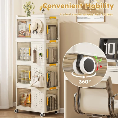 - 【Moveable & Stackable Design】The storage bins are removable and stackable, and Each layer has matching grooves and clasps on both sides of the top to securely lock the storage bins.There are four rotating wheels at the bottom, which makes it easy for us to move. 【Large Capacity & DIY Pegboard】Single storage bins