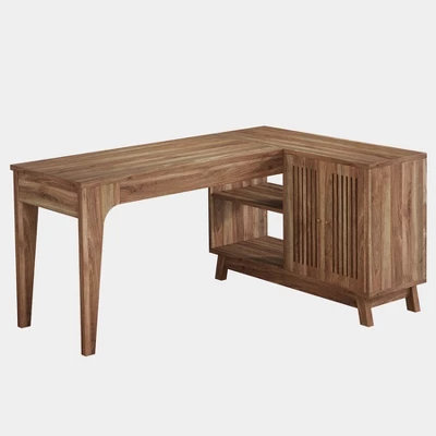 - Spacious 41-inch L-shaped workspace for computers and accessories