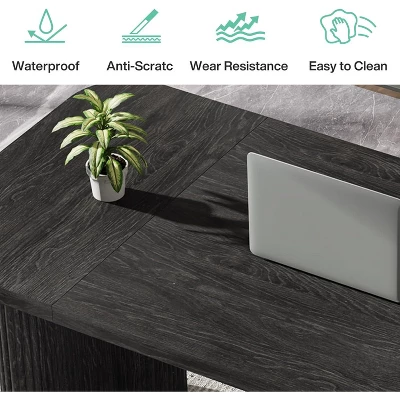 This rectangular computer desk is constructed from 1.37″ thick MDF and hollow core board, promising lasting durability. Rigorously tested to withstand heavy usage, it stays steady and firm, supporting your work gadgets with absolute reliability. You can rest assured this desk will remain a fixture in your workspace for years to come.