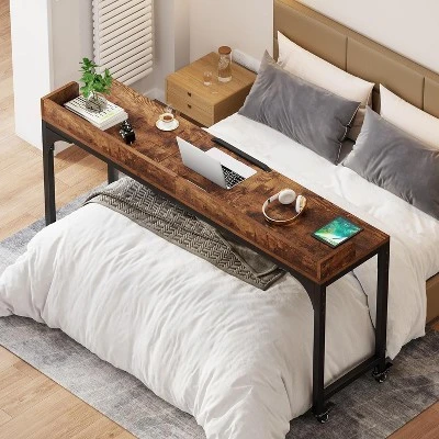 This over-bed table can fit almost all bed sizes. With a generous desktop, it provides ample space to accommodate your laptop, books, tablet, lamp, and other essentials. This overbed desk features a tiltable board with 5-level adjustable settings from 0 degrees to 75 degrees, allowing you to find the ideal viewing angle for working, drawing, reading, and writing. Whether you want to enjoy breakfast in bed, have a convenient workspace while lounging, or need a mobile solution for the bedridden or elderly, this mobile overbed desk is perfect for home, hospital, and medical facilities.
