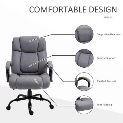 - COMFORTABLE DESIGN: The backrest of this big and tall office chair is covered in linen-feel fabric for breathability while the thick sponge padded head, back, armrest, and seat is soft and comfortable for working at home.