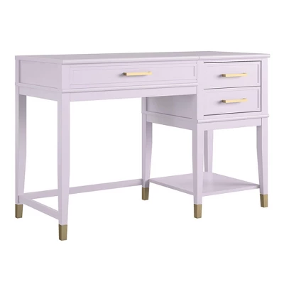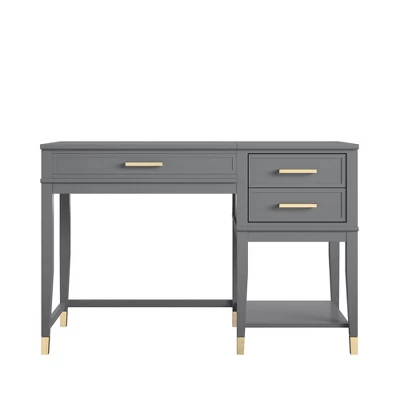 Work in style with the CosmoLiving by Cosmopolitan Westerleigh Lift Desk. Accented with trendy gold hardware and dipped feet, the Westerleigh includes two spacious drawers to store your ~things~. Here’s the game-changer: the top surface lifts up so you can work like a boss with options of sitting or standing. Available in multiple finishes, this glam desk nails the décor game.